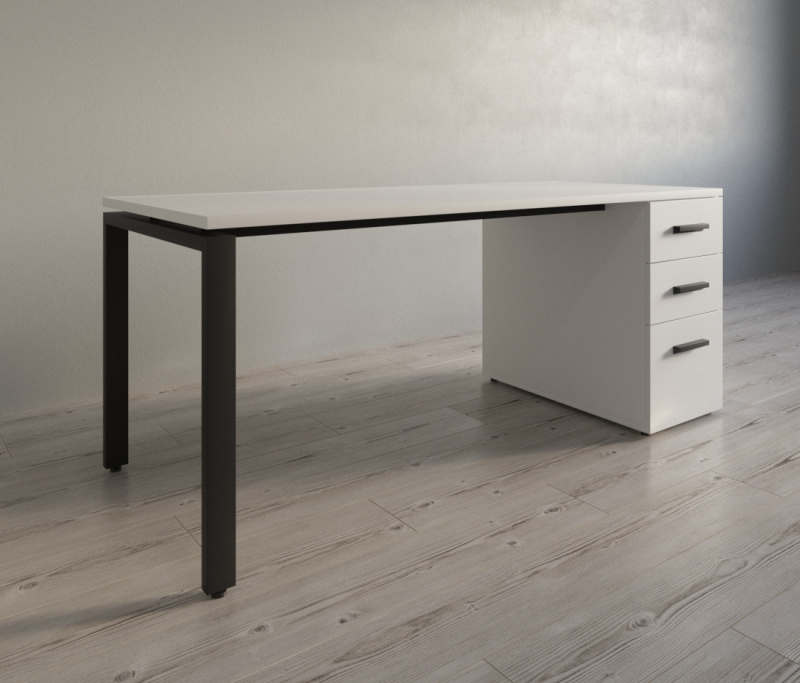 Эргономичный рабочий стол с тумбой на три ящика и П-образным каркасом 60х30 мм — это совершенство офисного минимализма в декоре «Белый Снег» от Kronospan.Массивная столешница 25 мм, контрастная черная фурнитура и надежные шариковые направляющие AKS PLUS обеспечивают премиальный комфорт, а регулируемые опоры и мобильная выкатная секция гарантируют безупречную устойчивость и функциональность вашего рабочего места.